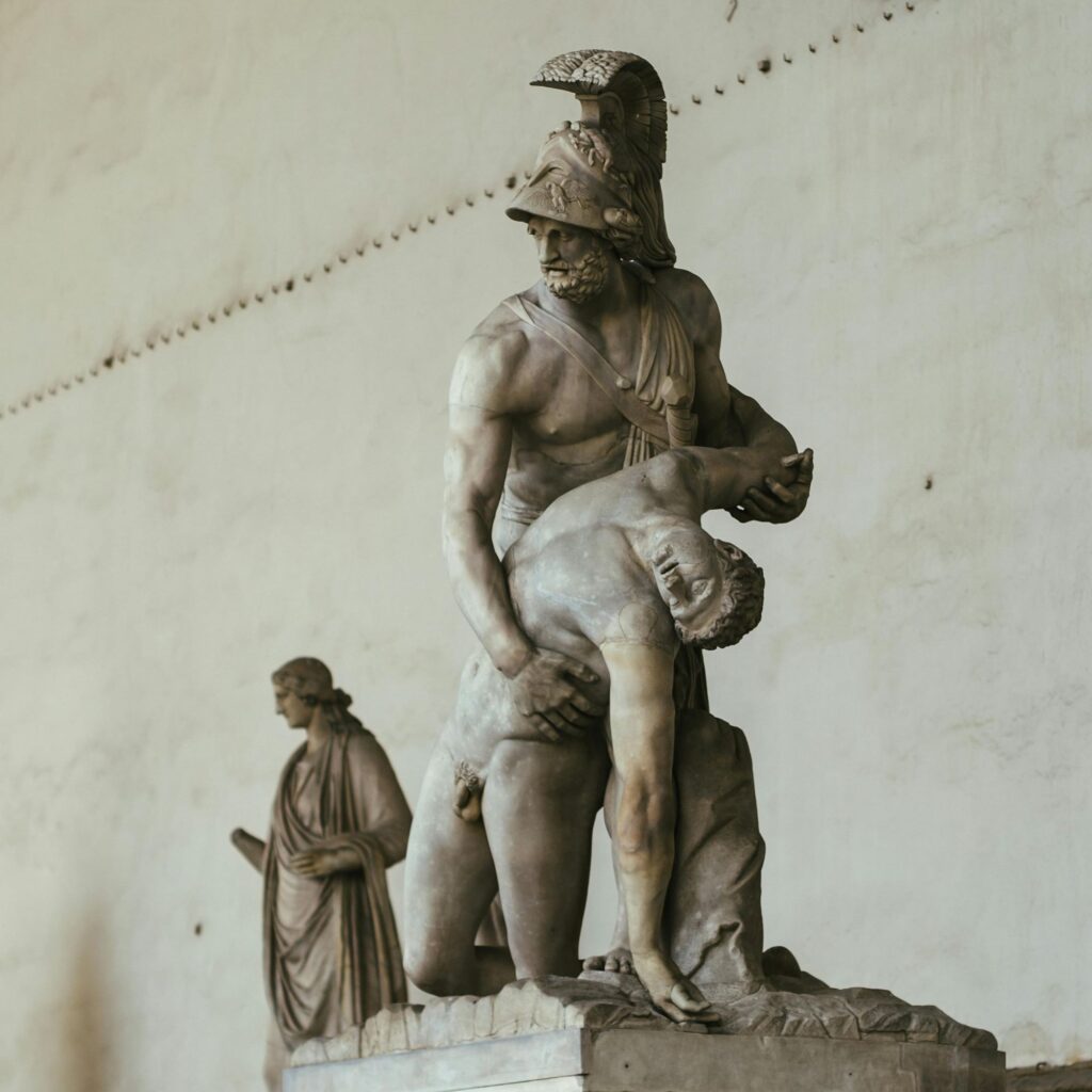 Príamo es humano aún para sí mismo. No se avergüenza del amor de padre, ni por suplicar y apelar “al corazón” —a la filía— de Aquiles. Enfrenta la fuerza con su fragilidad, y al romper su silencio, acontece la palabra —el logos—. Aquiles tiene ante sí al rey enemigo y con un solo puño podría… sin embargo, el gran guerrero se conmueve porque Príamo le recuerda a su padre y también a él mismo, con la tristeza por la muerte de Patroclo (Canto XXIV). Príamo ruega y Aquiles se conmueve, y juntos lloran sus desdichas.