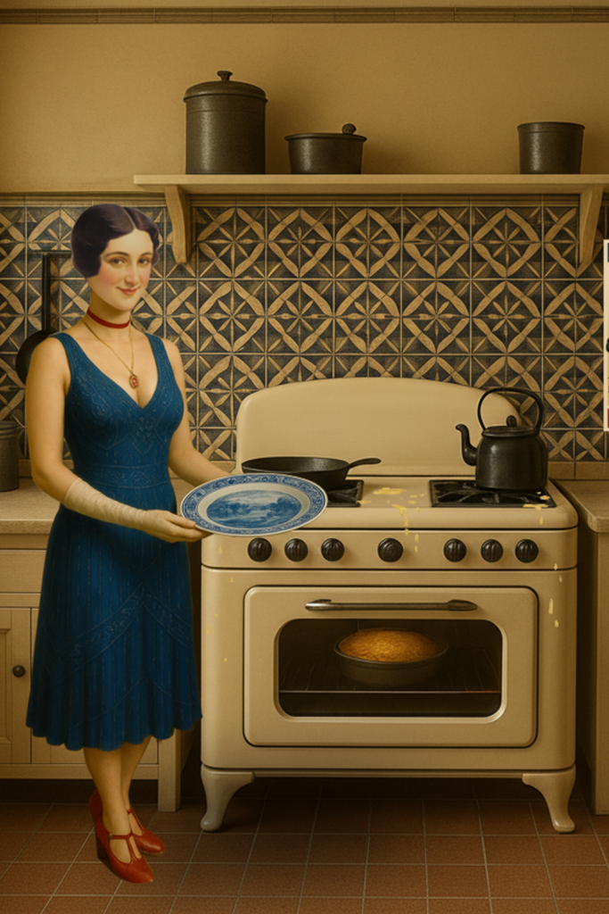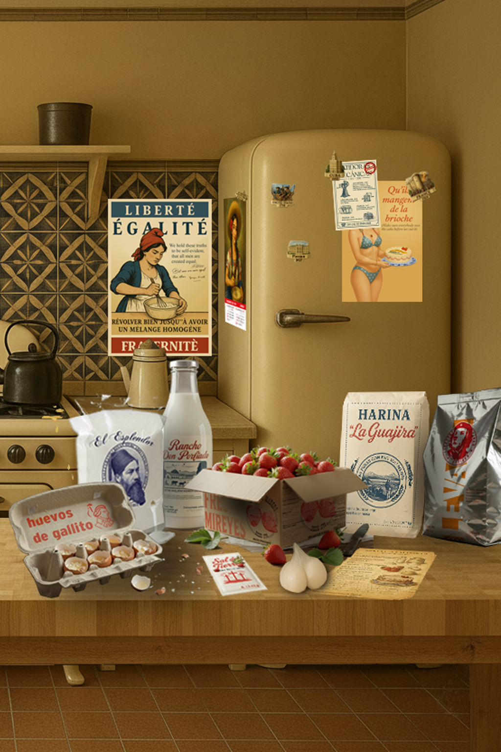 12. La mujer de la imagen es la foto que utilizó Fabien Bradu para el libro biográfico de Antonieta Rivas Mercado, aristócrata mexicana y mi tía bisabuela. Con este rostro se trabajaron las imágenes, vía inteligencia artificial, para las imágenes de la cocina y el cartel “Qu’ils mangent de la brioche”.